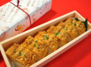 これを機会に寿司店の味を楽しんでいただくため、京都寿司組合で取組んでいる企画として、通常ではあり得ない特別価格、この日に合わせ、「鱧小袖寿司」を特別価格で販売いたします。京都ならではの寿司職人の技を生かしたお寿司で、力を蓄え願いを叶えましょう!